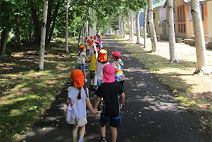 家庭と園を生活の基盤としている子ども達が「社会」という存在に興味を持ち、自分の知らなかったことを知り、自分の目で見て、耳で聞いて体験し、自分の生活とのつながりを実感しながら関心を深める楽しさに出会うことを目的としています。