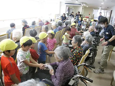 お年寄りは幼児から生きる力や希望を受け取り、子どもたちは社会性をいたわり、尊敬の念を培っています。