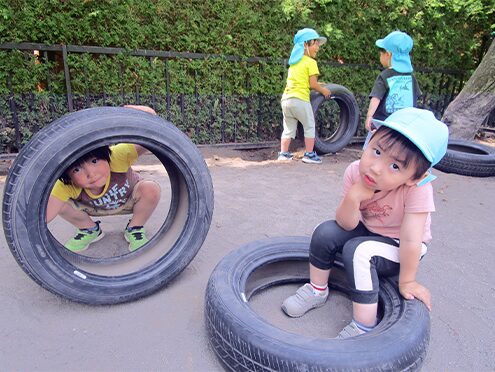 マット運動、跳び箱、縄跳び、鉄棒、巧技台 など保育の中で積極的に取り組み、身体作りや敏捷性・平衡感覚・瞬発力などを養います。
