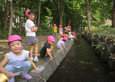 自然体験では、子どもたちが外での活動を通じて、自然の大切さを学びます。季節ごとの変化を観察しながら、草花や虫、動物に触れることで、探究心や観察力を育てます。また、友達と一緒に自然を楽しむことで、協力する力やコミュニケーション能力も向上します。