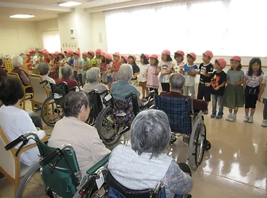 お年寄りは幼児から生きる力や希望を受け取り、子どもたちは社会性をいたわり、尊敬の念を培っています。